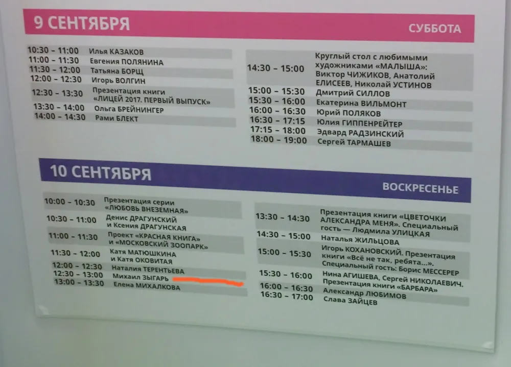На этом для меня закончился и второй день… Вдруг кто-то из москвичей сумеет посетить выставку в субботу и сделать обзор встреч с авторами? Почти всё интересное будет происходить на стенде «Эксмо», за исключением встречи с Сергеем Тармашевым – она пройдёт на «АСТ».