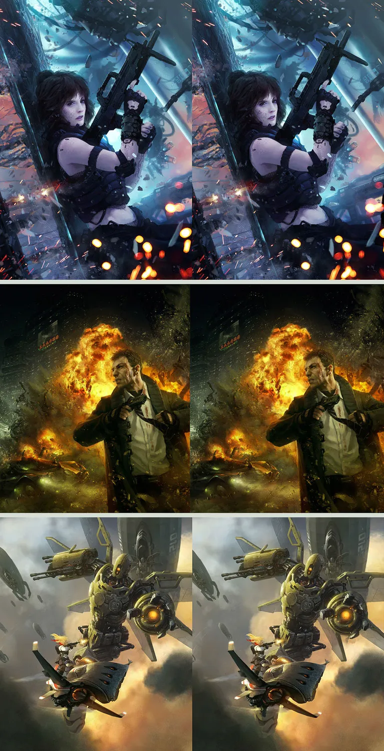 Шарясь по родному DeviantART, набрел (почти случайно) на галерею одного автора, в которой картинки были как бы "двойными". Заинтересовавшись, тыкнул в одну из работ и попал на это: