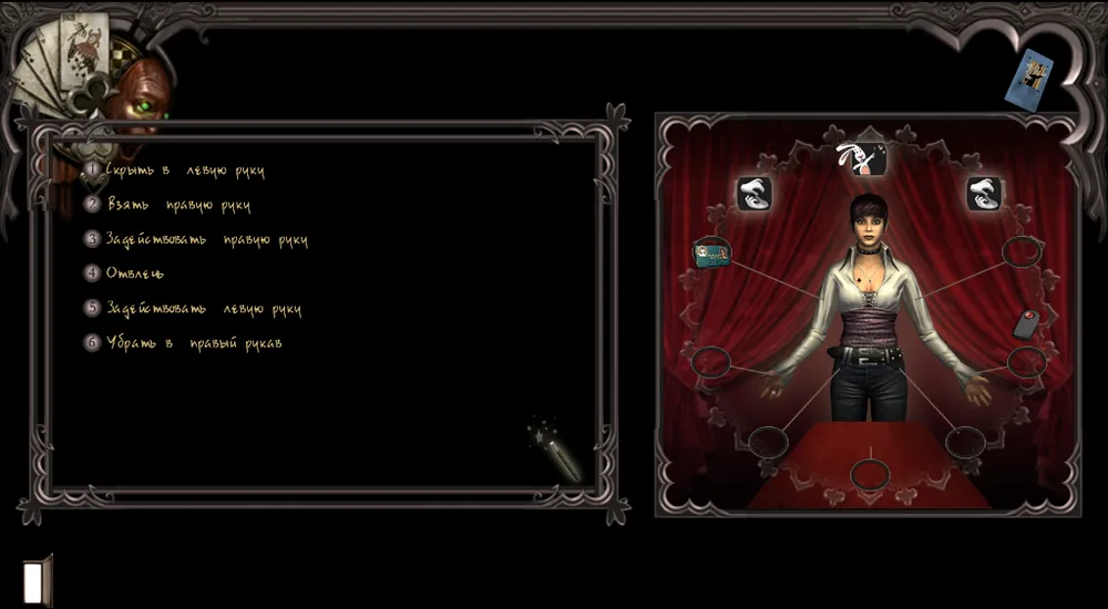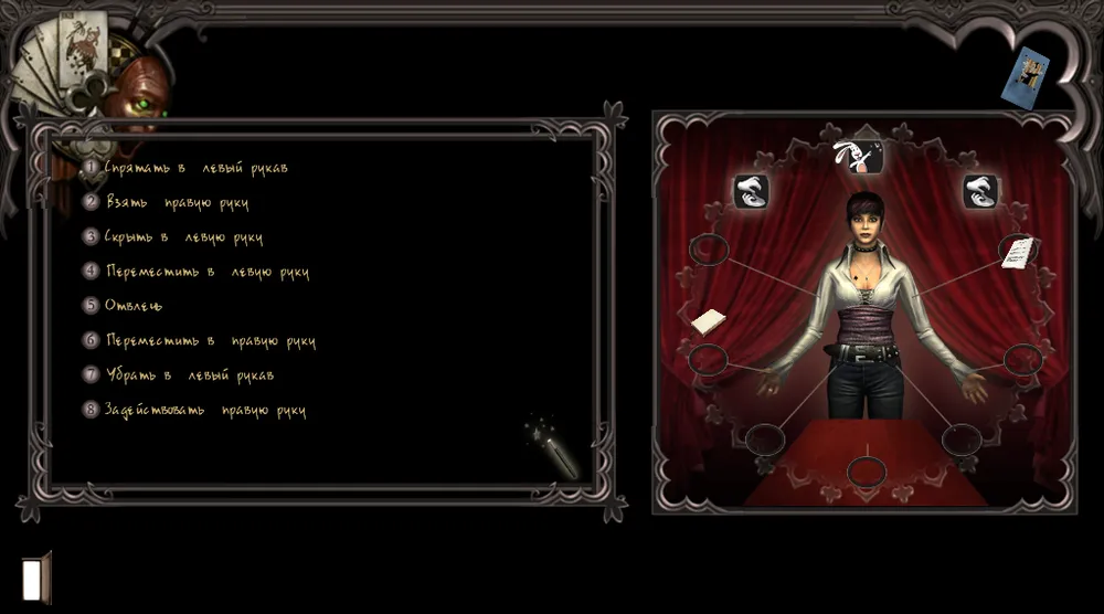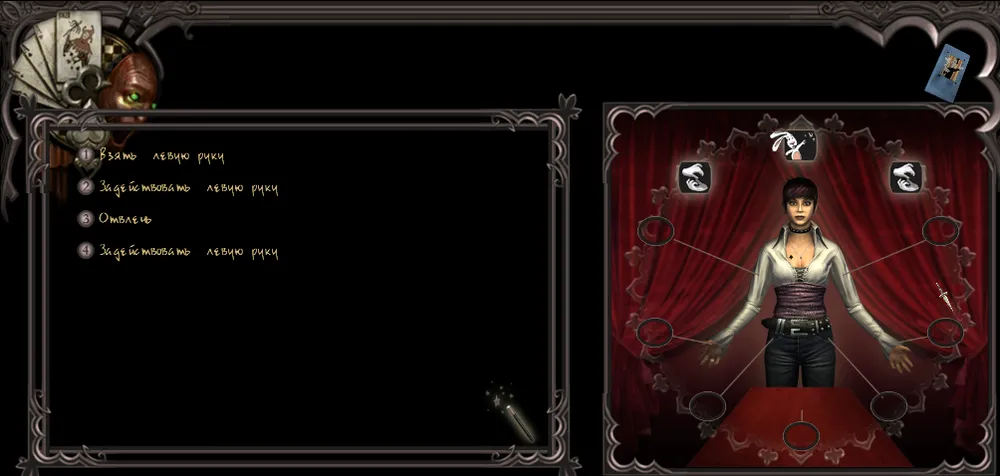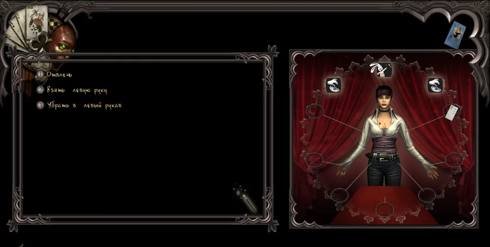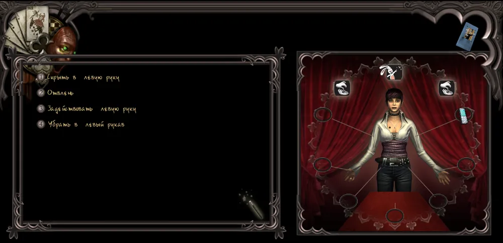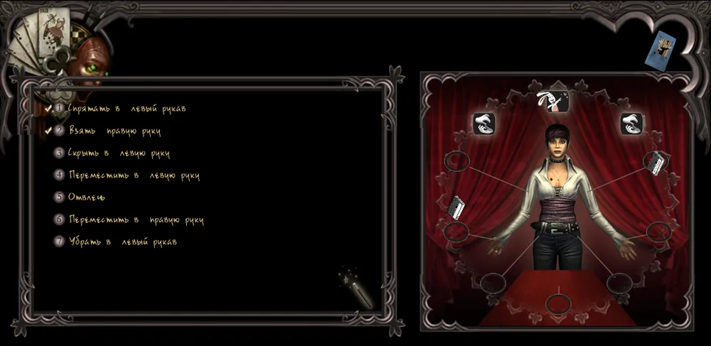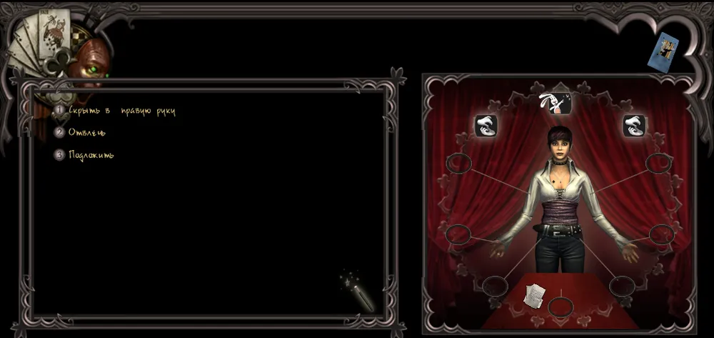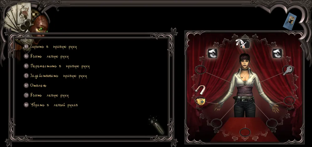 При возможности разговора с персонажем при наведении на него курсора появляется значок открытого рта, а при необходимости проведения фокуса – значок цилиндра и трости фокусника.