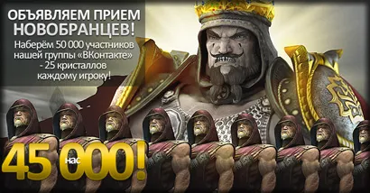 Воины! Армия практически собрана. Девятый легион поднял свой штандарт — 45 000 добровольцев набрано. Остался последний рывок до того момента, когда все жители мира Хаоса получат 25 кристаллов. Вступайте в нашу группу Вконтакте, приглашайте друзей и врагов. Оставайтесь с нами!