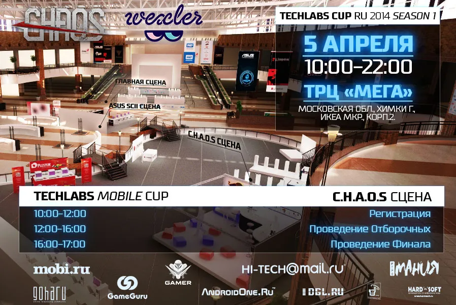 В этом году впервые в СНГ в рамках киберфестиваля TECHLABS CUP стартовал первый в СНГ Чемпионат по мобильным играм – TECHLABS MOBILE CUP. Финал Чемпионата по C.H.A.O.S и Asphalt 8 пройдет на планшетах компании WEXLER. Составить конкуренцию финалистам отборочных Чемпионата по мобильным играм и побороться за