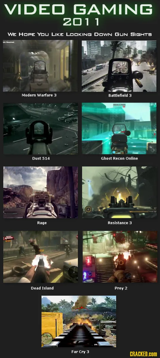 Давайте вернёмся к той картинке в самом начале. Причина, по которой все крупные игры (где нет драконов) выглядят одинаково - серия Modern Warfare. Пока что у нас 2 игры и спинофф, каждая из которыхсобрала столько же денег в Штатах, сколько собрал фильм "Аватар". Мы уже знаем, какая игра будет самой продаваемой игрой 2011 года - Modern Warfare 3, которую впервые показали на Е3.