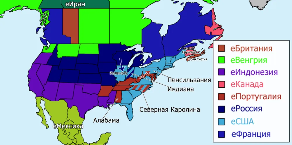 Армия еРоссии не отстает от союзника. Не дожидаясь конца атаки на Индиану, президент повторно атаковал штат Иллинойс. Это не помешало русской армии освободить Индиану. Причем победа была одержана с огромным перевесом, почти в 300000.