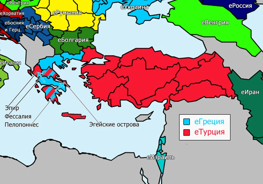 Греческая армия добилась большого успеха. Им удалось освободить Пелопоннес, а вслед за ним и Фессалию. Также успешно развивается наступление в Эпире. Турки недавно подавили там восстание греческих сепаратистов, но оказались слишком вымотаны для сопротивления наступающей греческой армии. Стена опустилась уже до -55 тысяч. А буквально несколько минут назад началось греческое наступление на Эгейские острова. С другой стороны, пока говорить о сокрушительном поражении еТурции не приходится. Они все еще контролируют Крит, Эгейские и Ионические острова. Сомнительно выглядит и возможность наступления греков на родные турецкие территории. Сейчас еТурция воюет практически в одиночку против еГреции и всех ее союзников. Наступление же греков на внутренние турецкие территории активирует все МПП турок, что серьезно изменит баланс сил.