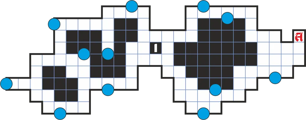 12. Дверь. От крена корабля ее заклинило. Необходимо выровнять корабль, чтобы дверь открылась, а для этого при помощи бочонка с дегтем (10) следует починить пробоину в борту (8).
