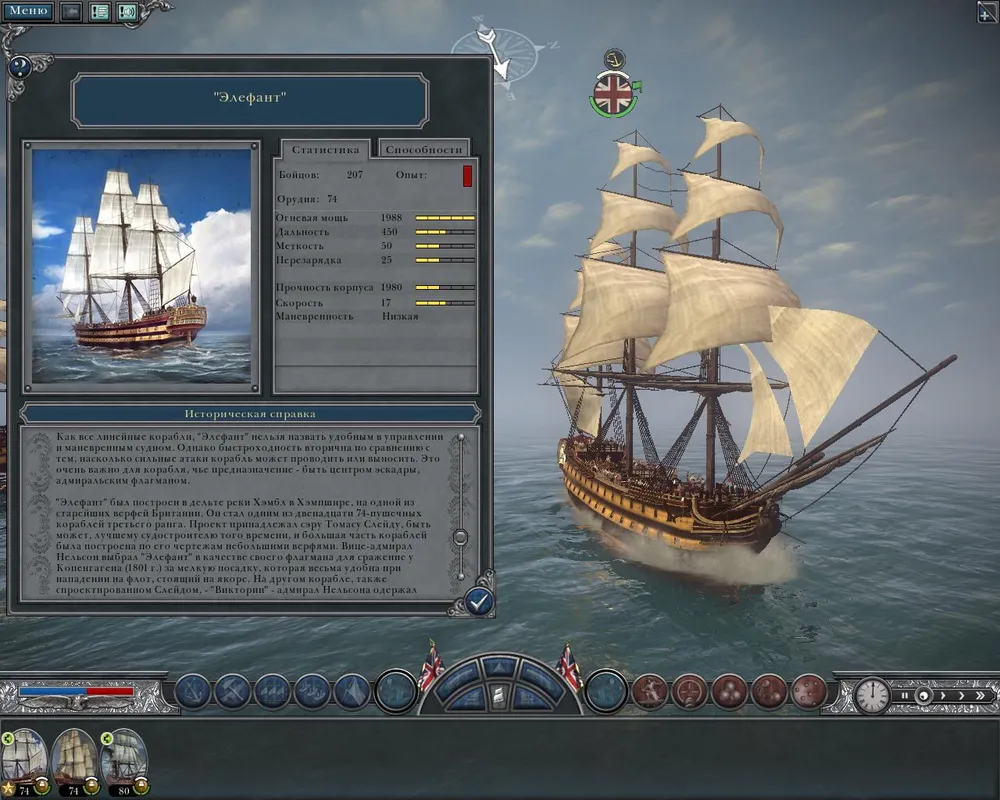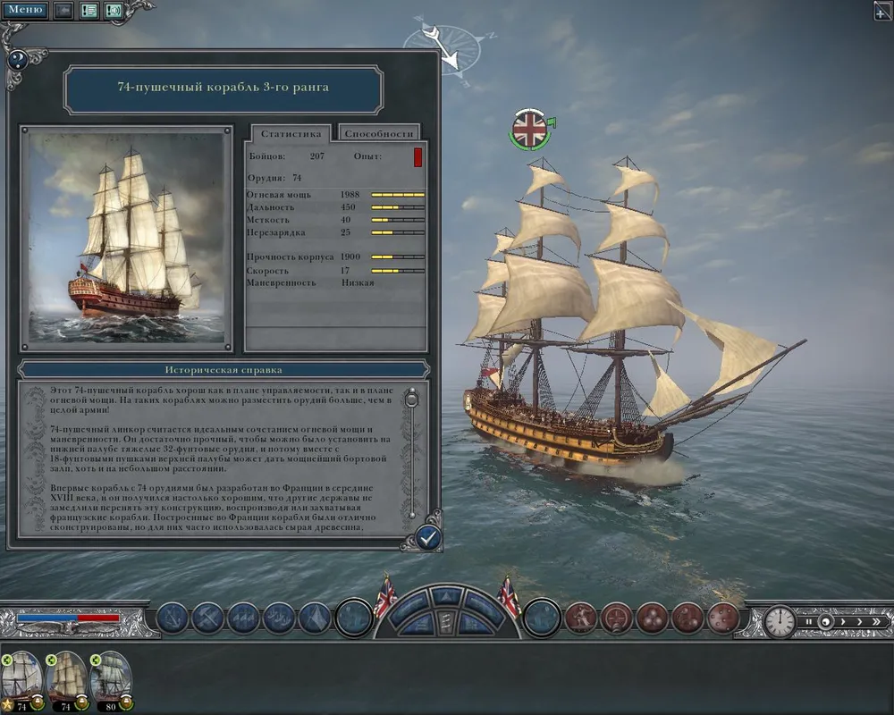 для сравнения - обычный 74-пушечник. разница минимальна.