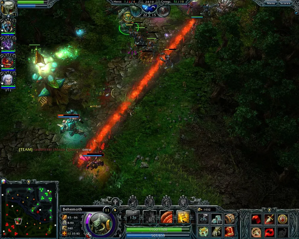 Стоит зайти в игру, как понимаешь, что перед тобой она — первая великая победа Heroes of Newerth. Интерфейс HoN намного информативнее и удобнее, чем у конкурента. Игра показывает состояние навыков союзников (уровень, оставшееся время перезарядки); рисует сразу несколько шкал здоровье\мана, чтобы даже в яростной схватке игрок видел, что с ним происходит; отображает состояние вредных и полезных заклинаний — не нужно гадать, когда закончится действие лечебного препарата, подсказка честно рассказывает с какой скоростью восстанавливается здоровье и сколько времени еще осталось (а еще все это выделяется цветом); заклинания восстанавливаются по таймеру, который отображается прямо на навыке; характеристики вместе с инвентарем вынесены в центр, никуда не приходится отвлекаться, а герои-одиночки никогда не потеряют контроль над персонажем (это когда тыкаешь куда-нибудь, а выделение с героя слетает).