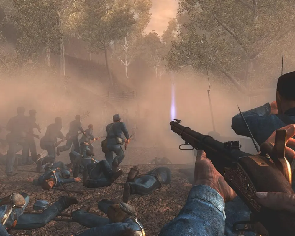 Итак, нас засылают в одно из прошлых, наряжают в идеологически для того времени верный костюм и дают первые задания. Например, нам надо помочь русским отразить нападение немцев. Хватаем винтовку, прыгаем в окопы и мочим противника. Здесь же можно сесть за пулемет и сильно напугать врага, который еще не особо привык к такому оружию массового поражения.