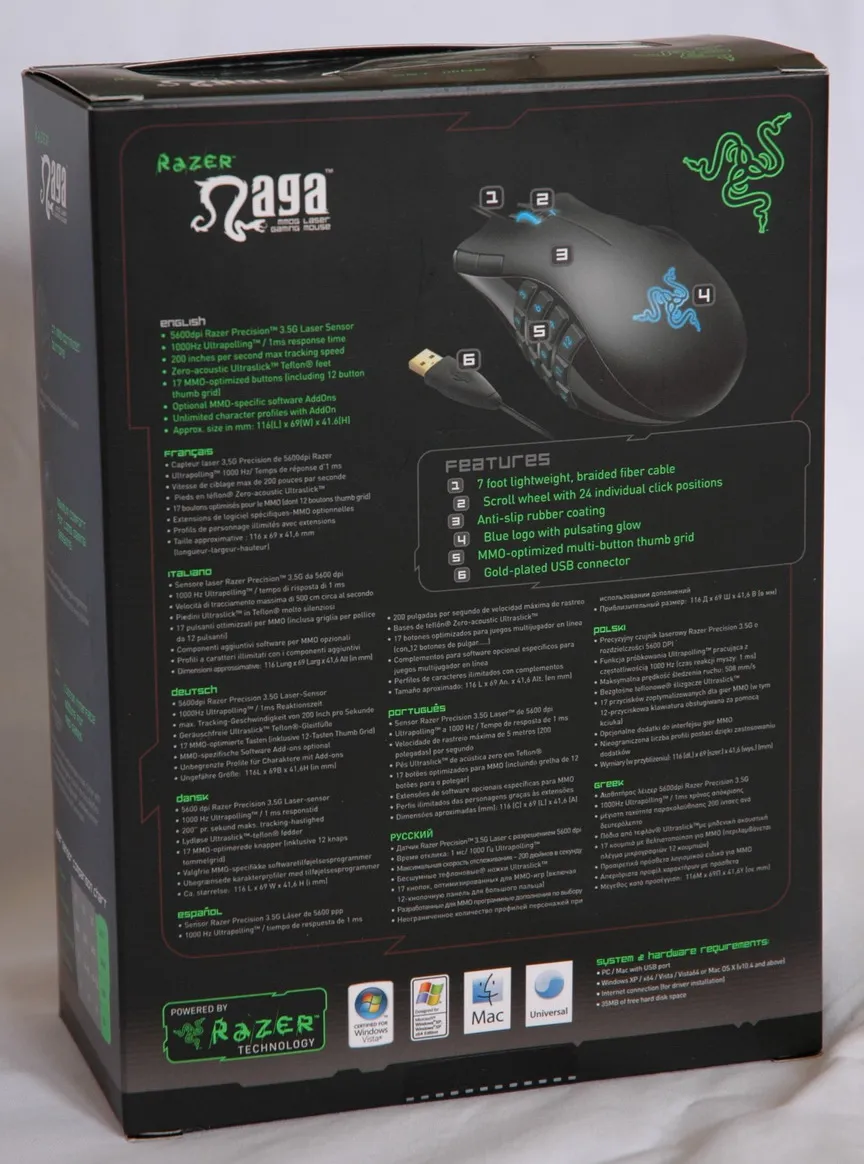 На заднике коробки бесконечное число европейских и других языков, а так же картиночки сертификатов и совместимостей
