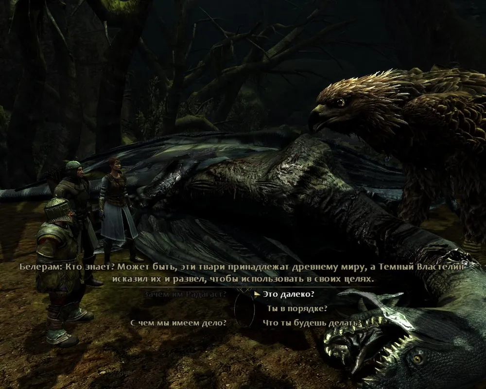 Игра встречает нас кратенькой вводной от Гендальфа, плавно перетекающей в разговор с Арагорном в таверне «Гарцующий пони» (незадолго до прибытия туда же некоего хоббита с тяжким бременем). Наличие диалоговой системы а-ля Mass Effect с возможностью расспросить собеседника о различных фактах из прошлого и настоящего Средиземья в целом и отдельных его жителей в частности лично для меня стало большой неожиданностью и огоньком надежды на Нечто Большее: приятные картинка и лицевая анимация, мягкие голоса и общий настрой задают нужный тон, а упоминание о знакомых по книгам, но не освещённых в фильмах моментах греют душу. Можно даже чисто для себя, без последствий (диалоги а-ля ME, помним же?) поиграть в уверенного человека или паникёра – самую чуточку, - а так же ввязаться в выполнение парочки побочных заданий…