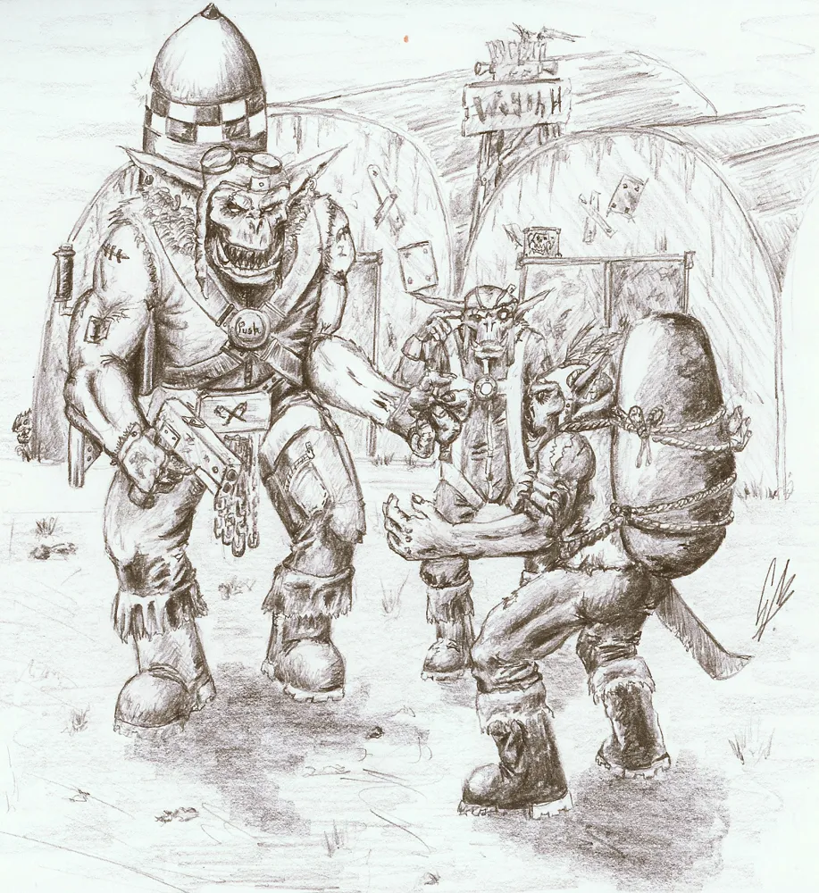 Рассказ из "Codex: Orks" (1991). Перевод авторский. Особая благодарность Sinmara за терпение и понимание, Soth за редактуру и поддержку и Beholder за "твой перевод по оркам даже я читать буду" (только попробуй не прочесть, скотина глазастая!).