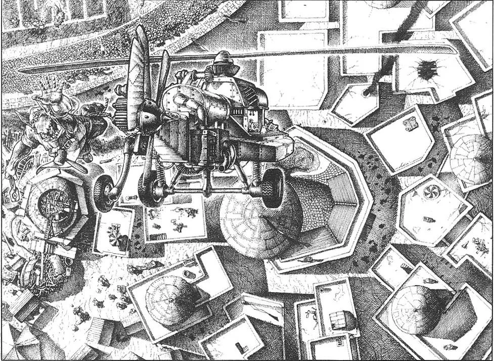Наззгронд посмотрел на гретчинов технаря, собиравших леса. Несмотря на распоряжения Стволуха, они работали умело и уверенно, быстро складывая железную раму, на которой стояло оружие. Ствол Глубокава Праникнавения был впечатляющей машиной, сваренной и свинченной из листов железа, поверхность которого была усыпана трубками, пусковыми рукоятками, цепными ремнями и выхлопными отверстиями.