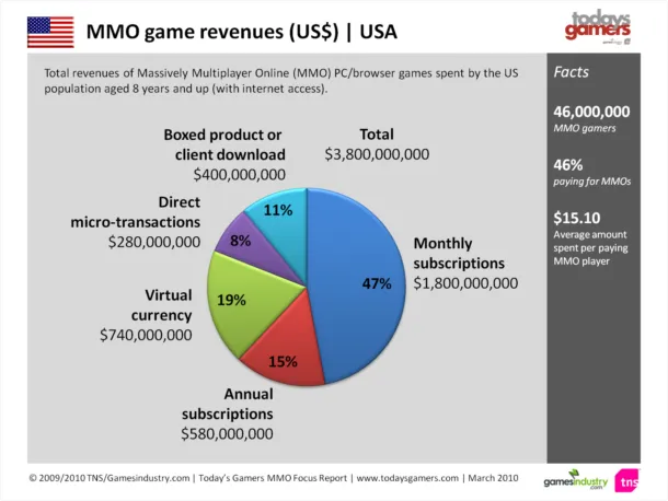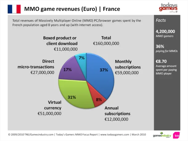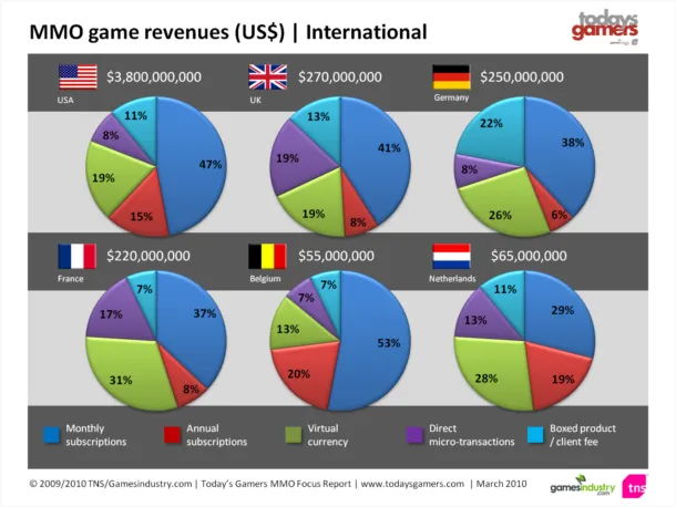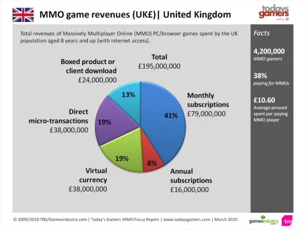 Согласно результатам отчета Today's Gamers MMO Focus Report, составленного компанией TNS и сайтом GamesIndustry, полтора миллиона британцев тратили в среднем по 10,6 фунта в месяц на ММО. В общей сложности в стране насчитывается 4,2 млн любителей ММО, из них только 38% платят за игры.