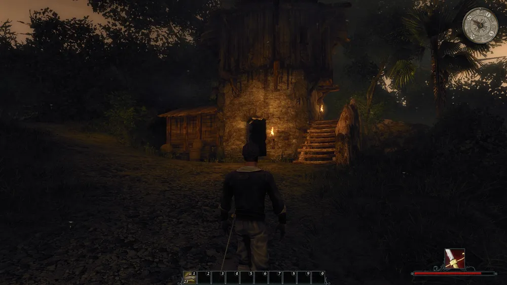 Исследовать этот мир интересно: где-то в джунглях прячется шайка сбежавших рабов, усеявших окрестности смертоносными ловушками, темнота пещер скрывает опаснейших монстров, а развалины древних храмов хранят сокровища. Хотя в поселениях ещё интереснее — можно пить наперегонки с пиратами на деньги, торговать и воровать, выполнять побочные квесты.