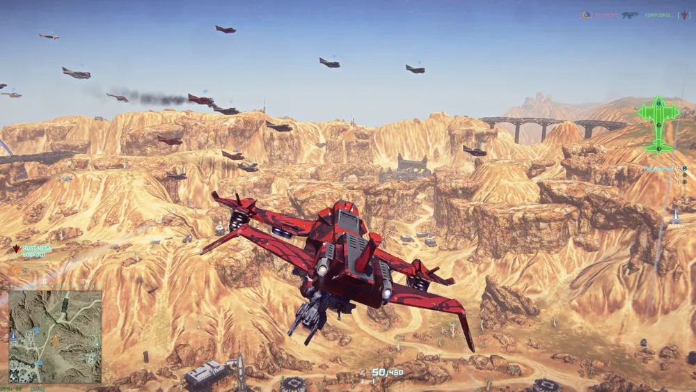 Техника довольно стандартная: багги, чья единственная жизненная функция — доставить вас до нужного места, танки, большие воздушные и наземные транспортники (последний можно развернуть в точку воскрешения, что чертовски полезно)... Отдельная тема, впрочем, авиация — она здесь действительно оказывает огромное влияние, но управление ей, надо сказать, довольно... своеобразно. Пока вы не привыкните к особенностям руления воздушной техникой, летать она будет преимущественно вниз, что немного раздражает.