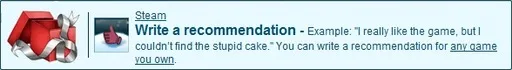 Напишите рекомендацию. - Example: "I really like the game, but I couldn’t find the stupid cake." You can write a recommendation for any game you own.