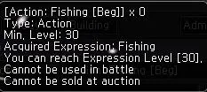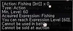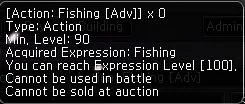 Fishing – используется для ловли рыбы в специально отведеных для этого зонах. Приминается в мирное время, клавишей V. Получить действие можно за квест.