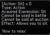 Sit – одно из четырех действий, которое используется только в мирном время(не в бою), Sit – используется для восстановления здоровья и маны для всех участников группы(главного героя и всех наёмников.)