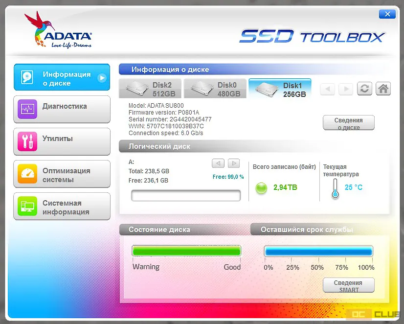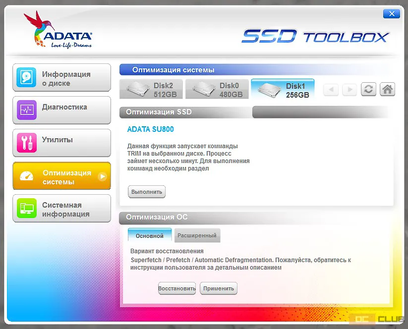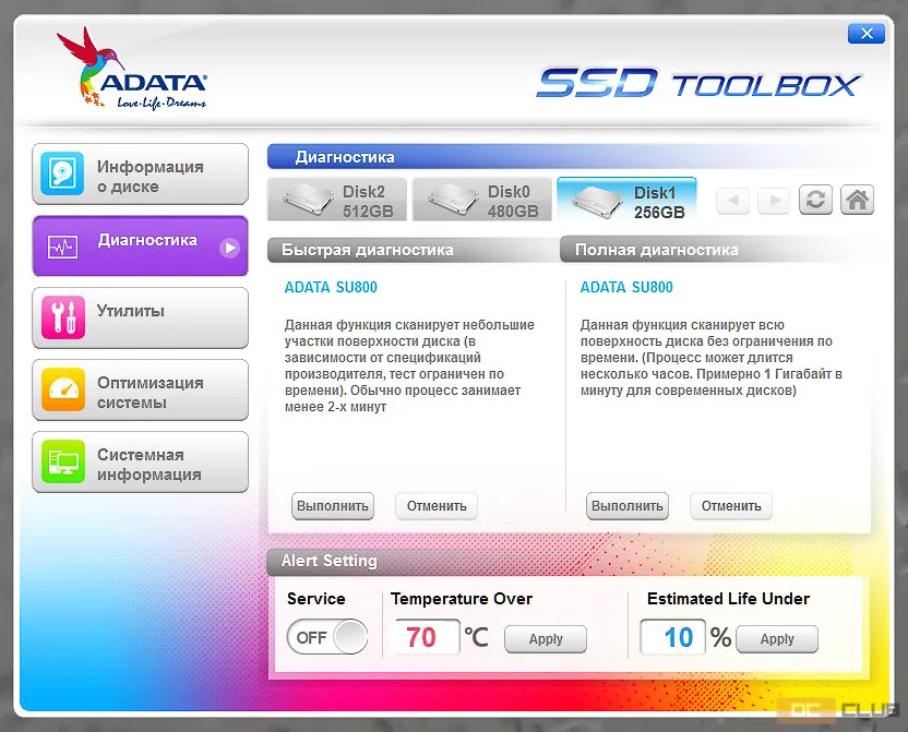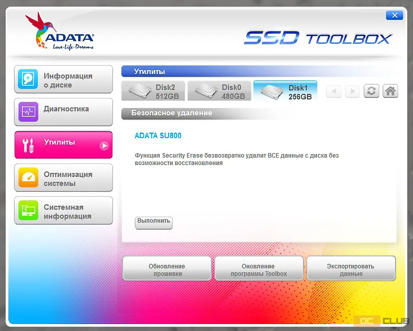 Софтинка у ADATA SU800 очень бодрая и разноцветная.