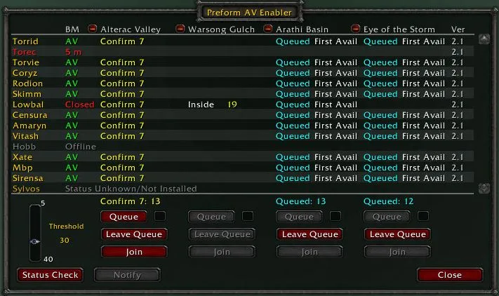 Очень полезный аддон для создания и руководства премейдами. Лидер премейда, если у остальных участников группы так же установлен этот аддон, может автоматически всех записывать в очередь на бг, давать всему рейду цели, фокусировать их, управлять входом/выходом участников рейда на бг. Короче говоря, незаменим для серьёзных премейд-компаний.
