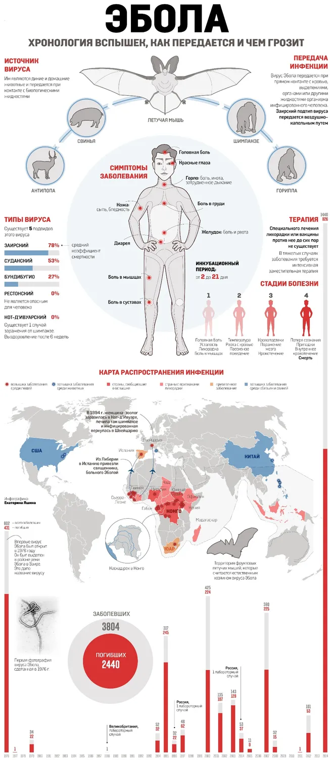Особый драматизм ситуации придает то, что, хотя впервые вирус Эбола был зафиксирован еще в 1976 году, лекарство от болезни до сих пор не разработано.