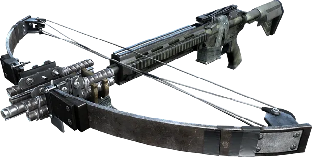 Инспирированный реальной инженерной изобретательностью во время боевых действий, этот арбалет построен на основе корпуса от нерабочего автомата и других деталей: например, провода в качестве тетивы и металлических обломков, послуживших дугой.