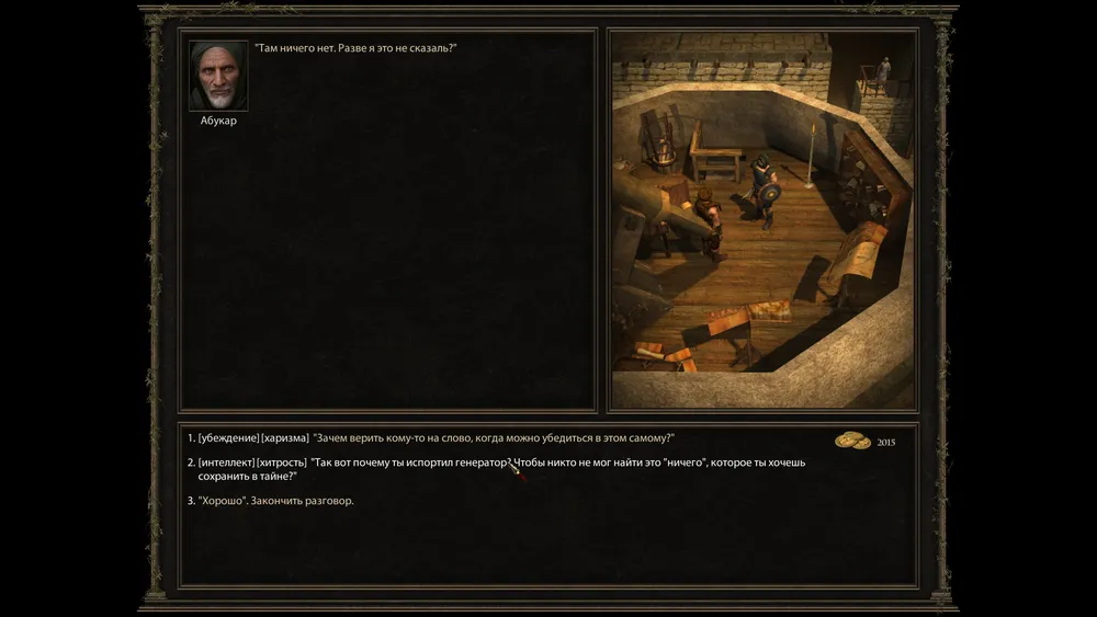 Если выпили, то понимаете, что напиток с ядом, персонажа мутит и ХП половинится (или снимается 15 – не могу точно сказать, у меня было 30). Дальше, требуем от него убраться подобру-поздорову. Грядёт драка. Противник не очень сильный, только имеет отравленный топор.