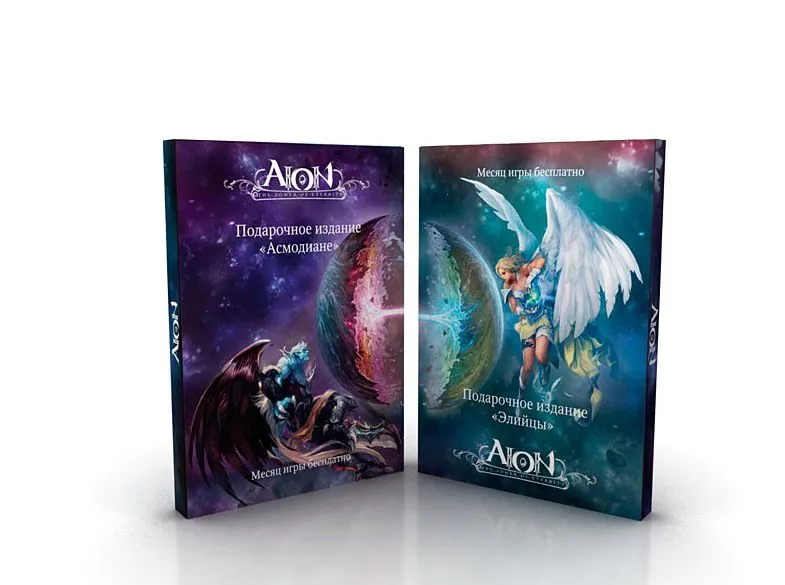 В России Aion издается полностью на русском языке. В продаже можно найти два варианта DVD-издания, оформленных в стиле Элиоса и Асмодеи соответственно. Внутри находятся DVD с игрой, красочный чехол с описанием истории элийцев или асмодиан, руководство пользователя, двухсторонний плакат, набор наклеек и эксклюзивный игровой бонус — магический головной убор. К диску прилагается код, который предоставляет предоплаченный месяц игры с момента официального релиза.