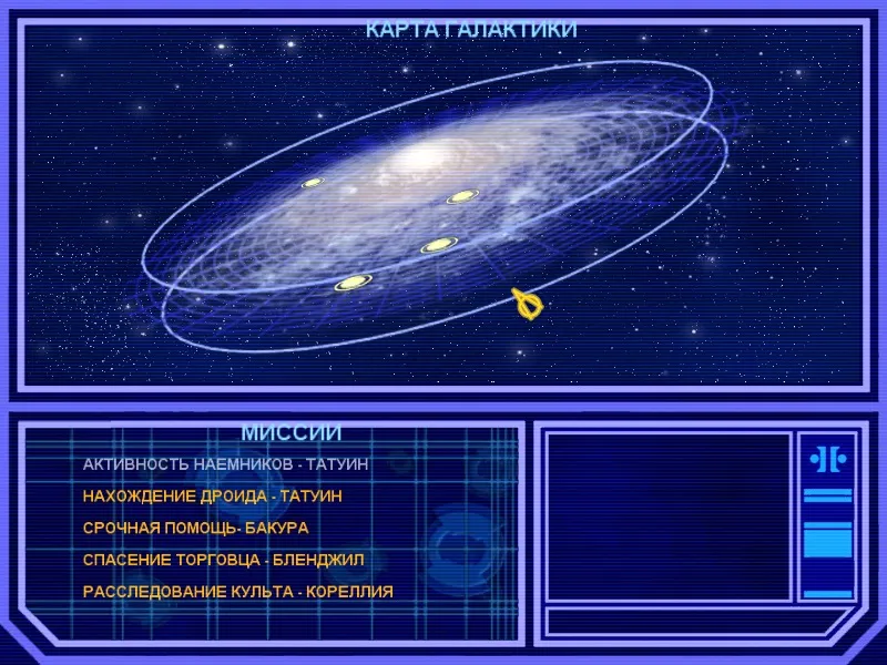 В общем мы сумеем путешествовать по 14 планетам JK: Jedi Academy: Татуин, Кореллия, Бленджил, Бакура, Нар Крита, Зонджу V, Крил'дор, Корускант, Досуун, Чандрила, Танааб, Йалара, Бисс и Орд Мантелл.