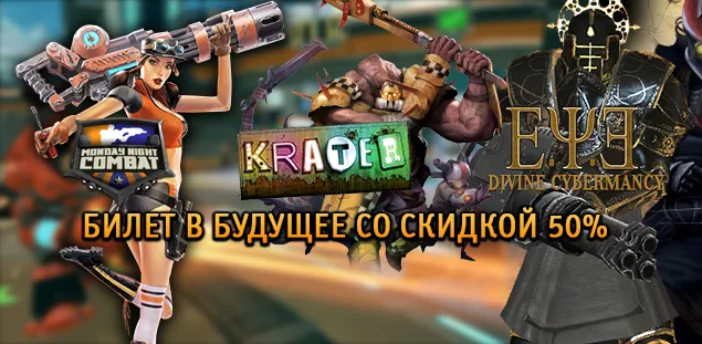 Примерьте на себя роль члена секретного сообщества E.Y.E и отбейте атаку неизвестной силы, перенеситесь в постапокалиптическую Швецию и примите участие в опасном приключении в Krater, а также сразитесь за славу и богатство в самом популярном кровавом спорте будущего в Monday Night Combat.