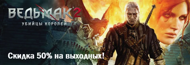 Эти выходные мы предлагаем вам провести в компании мрачного Ведьмака: начиная с 00:00 субботы (19.01) до 23:59 воскресенья (20.01) The Witcher 2: Убийцы королей. Расширенное издание (Steam-версия) можно будет купить с 50% скидкой!