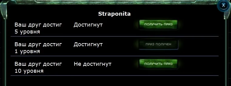 Когда приглашенный вами друг достигнет 1 уровня, вы автоматически получите подарки и так за его каждые 5 уровней. Но и это еще не все, ваш друг тоже получает подарки за каждые 5 уровней.