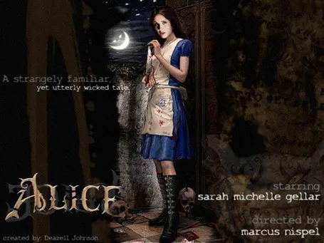 И вот почему: ходит такой слух, что паралельно с работой Бартона, ведущейся по оригинальному произведению (по книге, если кто не в курсе), идет работа над созданием фильма "Alice", с Сарой Мишель Геллар (известной по бесконечному сериалу "Баффи") в главной роли, который будет снят по мотивам игры, в точности копируя сюжет и атмосферу шедевра господина McGee.