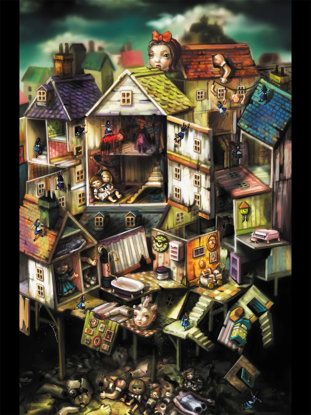 В предыдущем посте была только часть артбука. Выложить первую часть и не выложить при этом вторую, было бы верхом жестокости с моей стороны. Но на самом деле я белый и пушистый. Посему мы продолжаем путешествие по такому притягательному и безумному миру Алисы, созданному Американом МакГи.