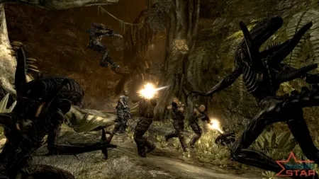 Хищника разработчики показывают пока охотней всего. На самом деле это не удивительно. Даже учитывая харизматичность морпехов и тем более чужих, хищник остается самым интересным персонажем сериала. По крайней мере, в игровом плане. Во-первых, он может становиться невидимым и незаметно подкрадываться к своим жертвам. Во-вторых, на плече у него есть лазер, прекрасно справляющийся с врагами на дальних дистанциях. Ну и, в-третьих, хищник крайне брутально расправляется с недругами. Чужих разрывает лазером на куски, а морпехам так и вовсе отрывает головы. Последнее девелоперы смакуют с особым удовольствием. Не побоявшись брюзжания всяких там ESRB, авторы с максимальным реализмом изобразили сцены вырывания головы с «корнями» из тела жертвы, и выглядят они действительно животрепещуще.