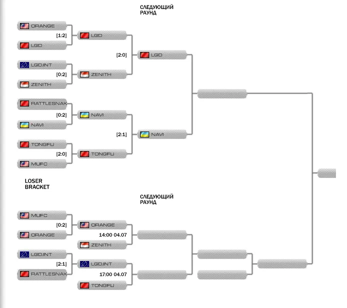 Первыми выяснят отношения две китайские команды. LGD показали отличную игру в первом раунде виннеров, одолев в упорной борьбе Orange и просто фантастический уровень в битве против Zenith. Несмотря на это фаворитами в матче будут DK, так как вышли с первого места в группе. Игровая форма Burning’а и компании также потрясающая.