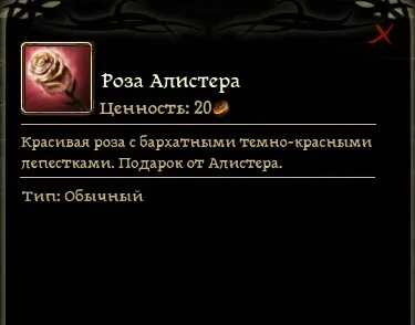 Когда Алистер по-настоящему влюбится, он захочет подарить розу. Принимать подарок или нет, решать вам. Если у вас высокое одобрение у Алистера, а еще у Зеврана или Лелианы, то при следующем разговоре он заставит Стража сделать выбор.