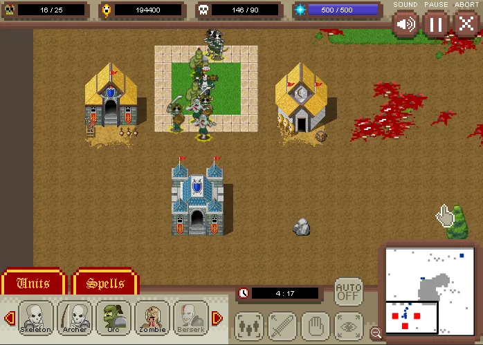 За деньги, которые вы получаете за убийство людей+за выполнение мини ачивментов на каждом уровне. Например, пройти уровень за 2 минуты. Или просто его пройти. Или убить героя, вариантов масса, а золото лишним уж точно не будет. В самой игре вариантов тактик хватает, тут вам и магия, и монстры разные… И у каждого свои плюсы и минусы. Вот только, чтобы их понять, надо внимательно играть. Например, зомби весьма быстро плодятся за счёт убийства людей и превращении их в себе подобных. Но простенький лучник может их всех перестрелять одним махом, на стрелы они не реагируют, только на мечи и становятся лёгкой мишенью. Если говорить о геймплее в самом начале, то всё просто, быстро клепаем юнитов, шлём их в бой…. Профит! Дальше становиться уже интереснее, количество юнитов увеличивается, у врагов появляются довольно сильные юниты, а со временем и у нас. Тут уже всё по другому, сходу врага не проймёшь и приходиться посылать юнитов волнами, да так, чтобы ещё и алтарь не сломали, а то знаем мы их! Иногда получается сразу, а иногда и с пятого раза.