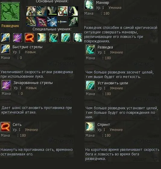 Второй из лукарей Альянса. Позиционируется как лучник- кайтер ( см. выше понятие кайт) в легкой броне. Класс специально заточенный под кайт. Сам по себе слабее лучника по атаке, но быстрее и имеет большую скорость стрельбы.