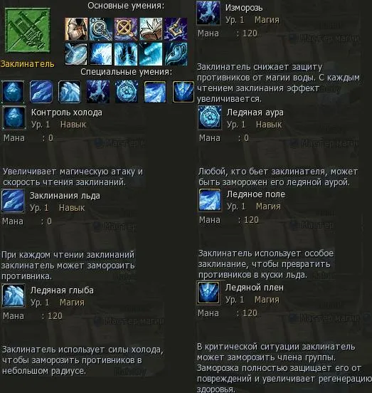 Боевой маг, маг льда, основное предназначение которого не нанесение максимального ДПС врагу ( ДПС- Damage Per Second т.е. урон в секунду ), а контроль врагов, и ухудшение их характеристик при помощи дебаффов ( дебафф - умение ухудшающее на время какой либо параметр, например атаку и т.п. ).