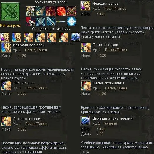 Войн альянса ближнего боя, песняр. Войн в легкой броне, вооруженный парными мечами. Сам по себе не наноси сильного ДПС по противнику, но заместо этого является классом контроллером по аналогии с заклинателем только вместо магических умений он использует песни.