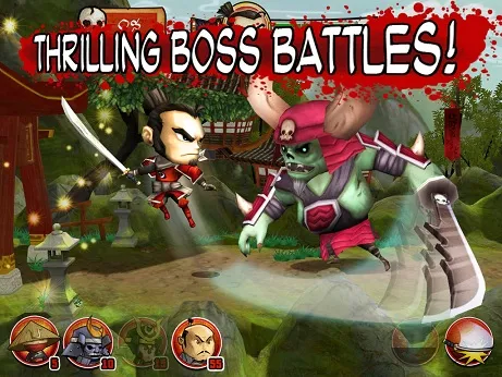 Чтобы переместить героя достаточно нажать в любое место у краев экрана. Когда самурай оказывается недалеко от противника, он начинает осыпать его стрелами, а в ближнем бою пользуется верной катаной. Автоматическая атака врагов - отличное решение, которое позволяет игроку сосредоточиться на перемещении, использовании способностей и призыве союзников. В начале игры, когда персонаж в одиночку справляется с отрядами мертвецов, управление достаточно удобно. Однако с развитием игры иконок на экране становится все больше, а попадать по ним в разгар боя - все сложнее. Промахнулся мимо кнопки - персонаж начинает двигаться, иногда прямо навстречу смертельной опасности. Есть и другая проблема, чтобы бежать вперед нужно тапать (т. е. нажимать) в правую часть экрана, но в этом случае палец закрывает область, из которой появляются враги.