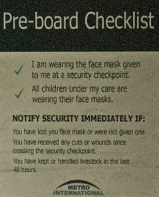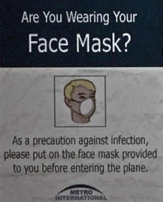 В качестве меры предосторожности против инфекции, пожалуйста, наденьте выданную вам маску перед входом в самолет.