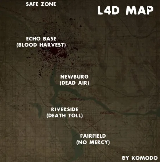 В конце кампании Выжившие поднимаются на борт рыбацкого судна, в надежде добраться до безопасной зоны (река как раз доходит до нее). Однако, что-то случилось с людьми на борту (возможно обладающие иммунитетом являются носителями, хотя я не уверен в этом) и выжившим пришлось причалить севернее Риверсайда в городе Ньюберг. Здесь начинается третья кампания "Смерть в воздухе", которая отмечена на карте третьим крестом с надписью "Overrun".