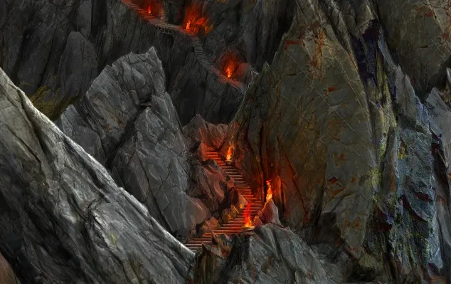 2. Лестница ведущая в горы до тех пор, пока не достигнет крепости/монастыря.