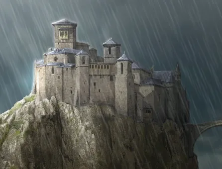 4. Крепость в деревне, также построена на скале, на внешний вид большая. Деревня и крепость соединены мостом.
