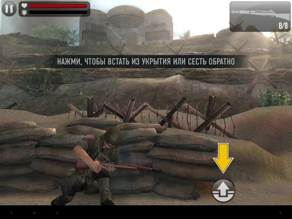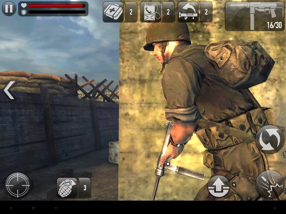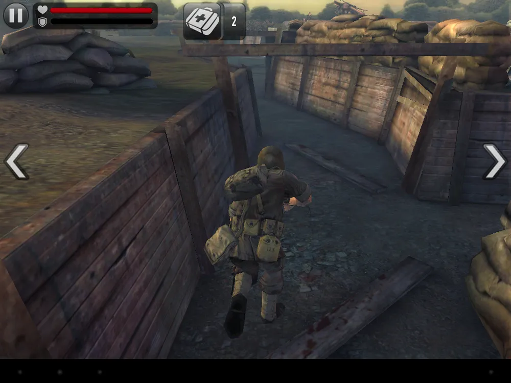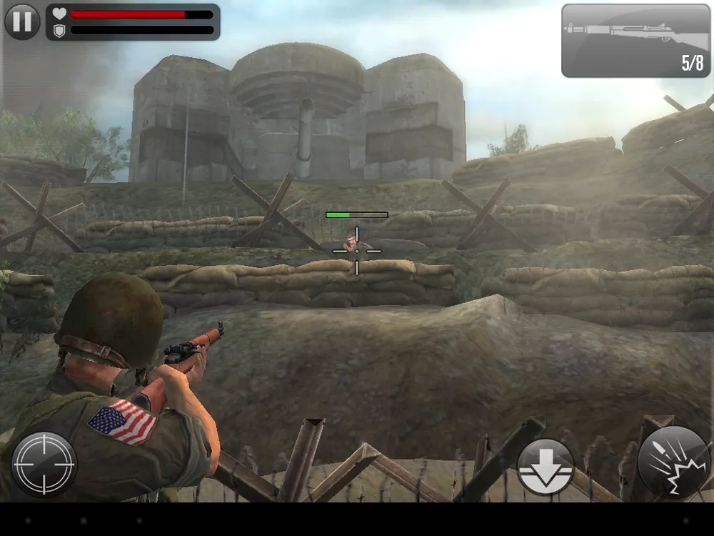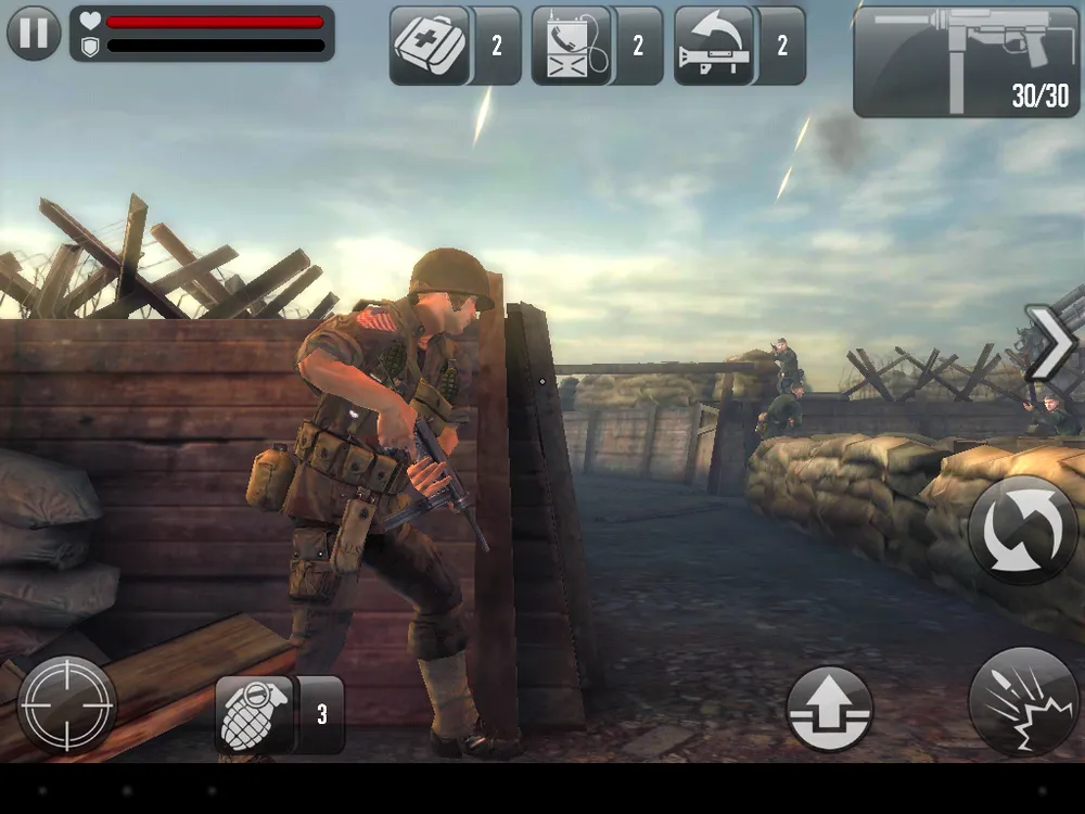 В игре солдатом мы управляем лишь во время перестрелок: от укрытия до укрытия герой бежит сам, а нам остается лишь справиться с очередной волной одноликих (в буквальном смысле) нацистов. Спасибо хоть тапать во время перебежек по разбросанным вдоль окопов патронам не надо :)