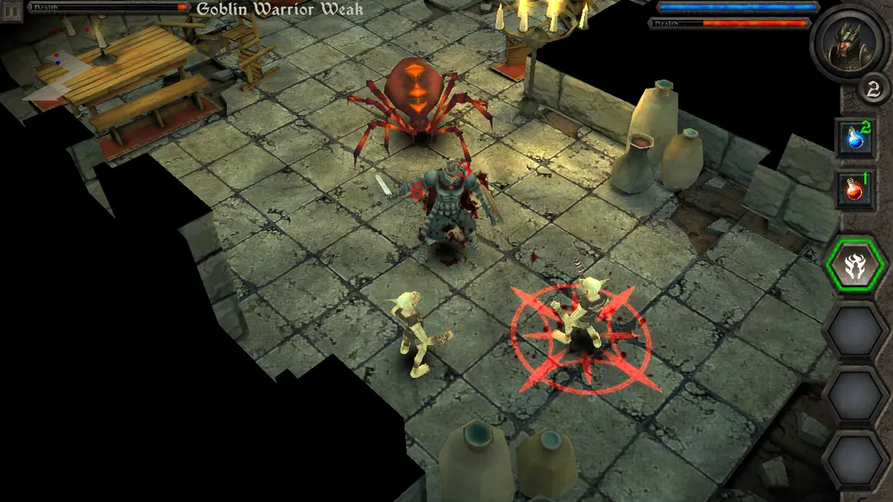 Ну а это – очередная диабла в кармане. «Зов героев» отличается вполне приятной графикой и красочными эффектами в сочетании со знакомым (а значит приятным) геймплеем. Вместо мышки, очевидно, мы тыкаем пальцем, а карта в левом верхнем углу до боли напоминает диабловскую. Сами локации, естественно, гораздо меньше, но зато все итемы и монеты по старой традиции старательно расфасованы в гробы, сундуки и, конечно же, бочки. Для тех, кто любит испытывать неуловимую ностальгию от чего-то нового!