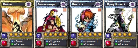 Помните, что в минитурнирах вы можете выиграть такие дорогие карты как Александра, Крина, Олли, Паук, Лайти, Рикардо.