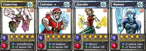 Вариативные карты: Янус, Бамбула, Кевин.